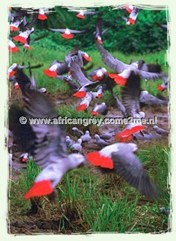 De Congo Grijze roodstaart papegaai komt voor in Afrika, van Ivoorkust tot Angola en centraal Congo , dit is het soort waar wij mee kweken.
